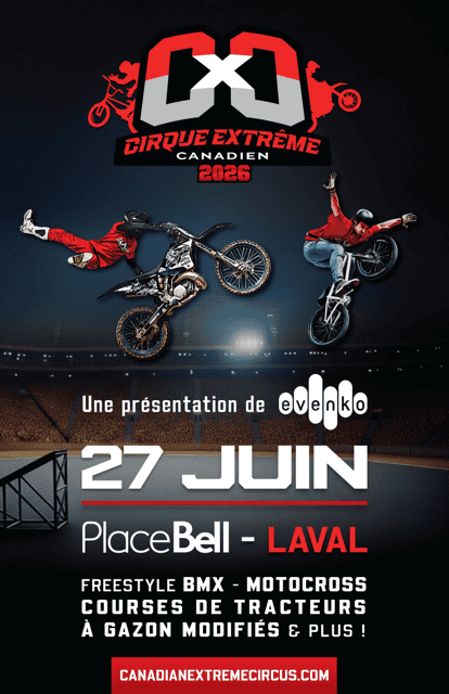 The CXC lineup will feature some of the best FMX and BMX riders in Canada. LP Chabot, the only one in the world doing the mini-flip in motocross. Mike Ouellet the Quebec FMX rising star. BMX performance featuring 3 times X-Games champion Mike Varga. E-Kart oval races and multiple other extreme acts will be in place to amaze you.